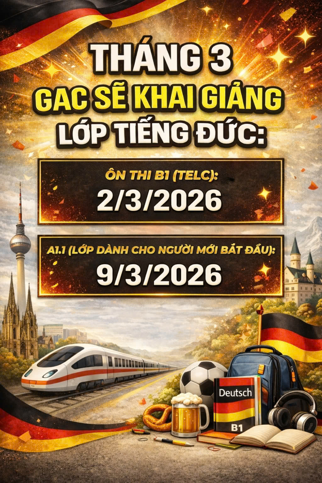 Bạn đang tìm kiếm một khóa học tiếng Đức bài bản để chuẩn bị cho kế hoạch du học hoặc làm việc tại Đức? Tháng 3/2026 này tại Hà Nội, Viện ngôn ngữ GAC chính thức khai giảng lớp ôn thi B1 và lớp học tiếng Đức trình độ A1.1 dành riêng cho người mới bắt đầu. Đây là thời điểm lý tưởng để bạn đặt nền móng vững chắc cho hành trình chinh phục tiếng Đức của mình.