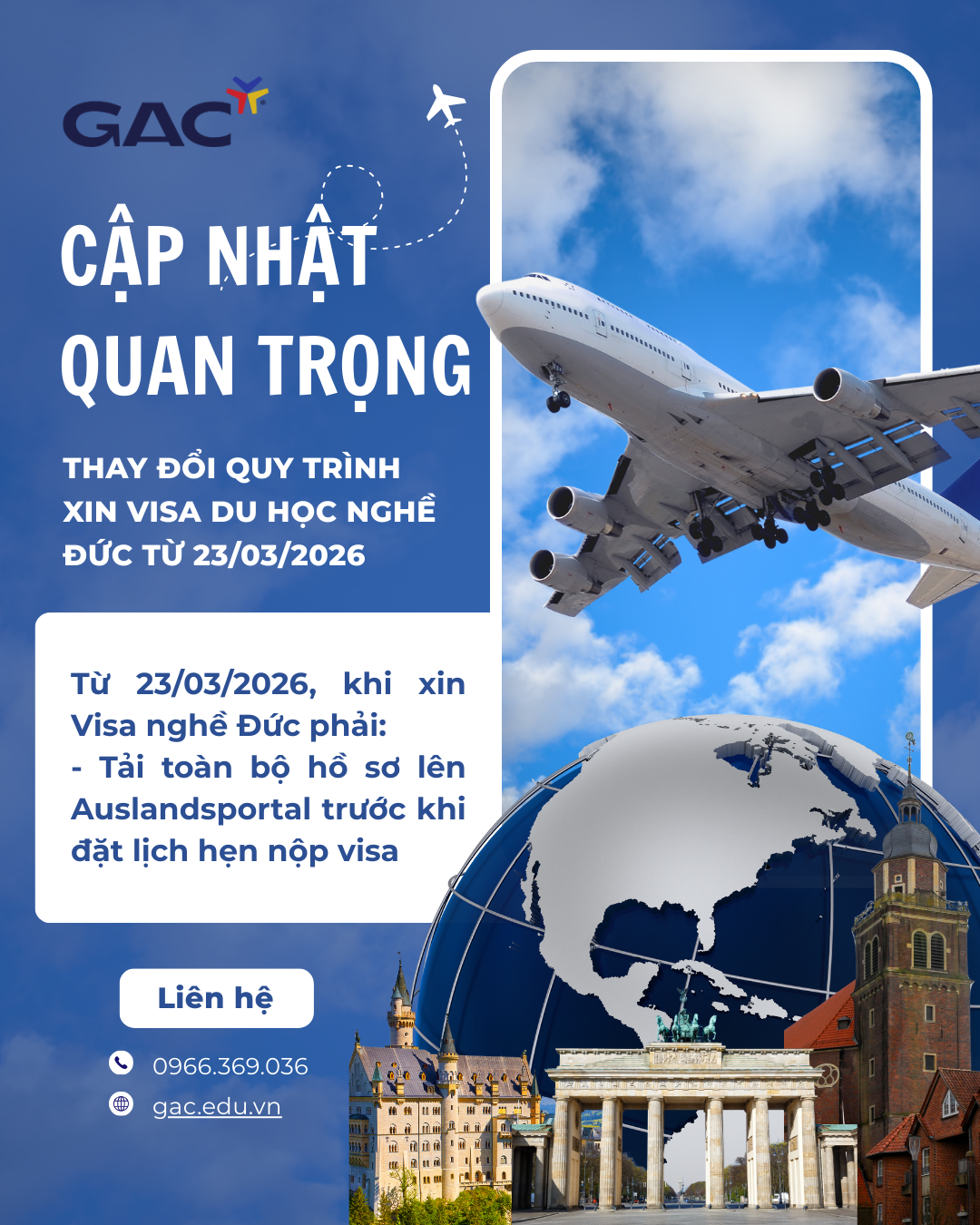 THÔNG BÁO THAY ĐỔI QUY TRÌNH XIN VISA DU HỌC NGHỀ ĐỨC TỪ 23/03/2026